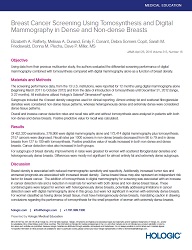 Using data from their previous multicenter study, the authors evaluated the differential screening performance of digital mammography combined with tomosynthesis compared with digital mammography alone as a function of breast density.