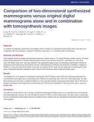 The objective of this study was to compare the diagnostic performance and radiation dose of Hologic’s 2D synthesized mammogram when used alone or in combination with tomosynthesis to standard FFDM when used alone or in combination with tomosynthesis.